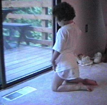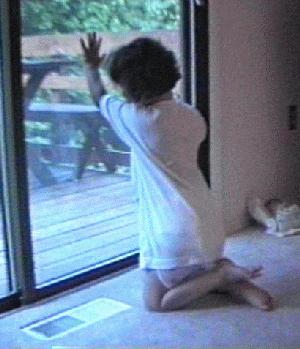 window to look out. Once there, she indicates her success by rapping on the