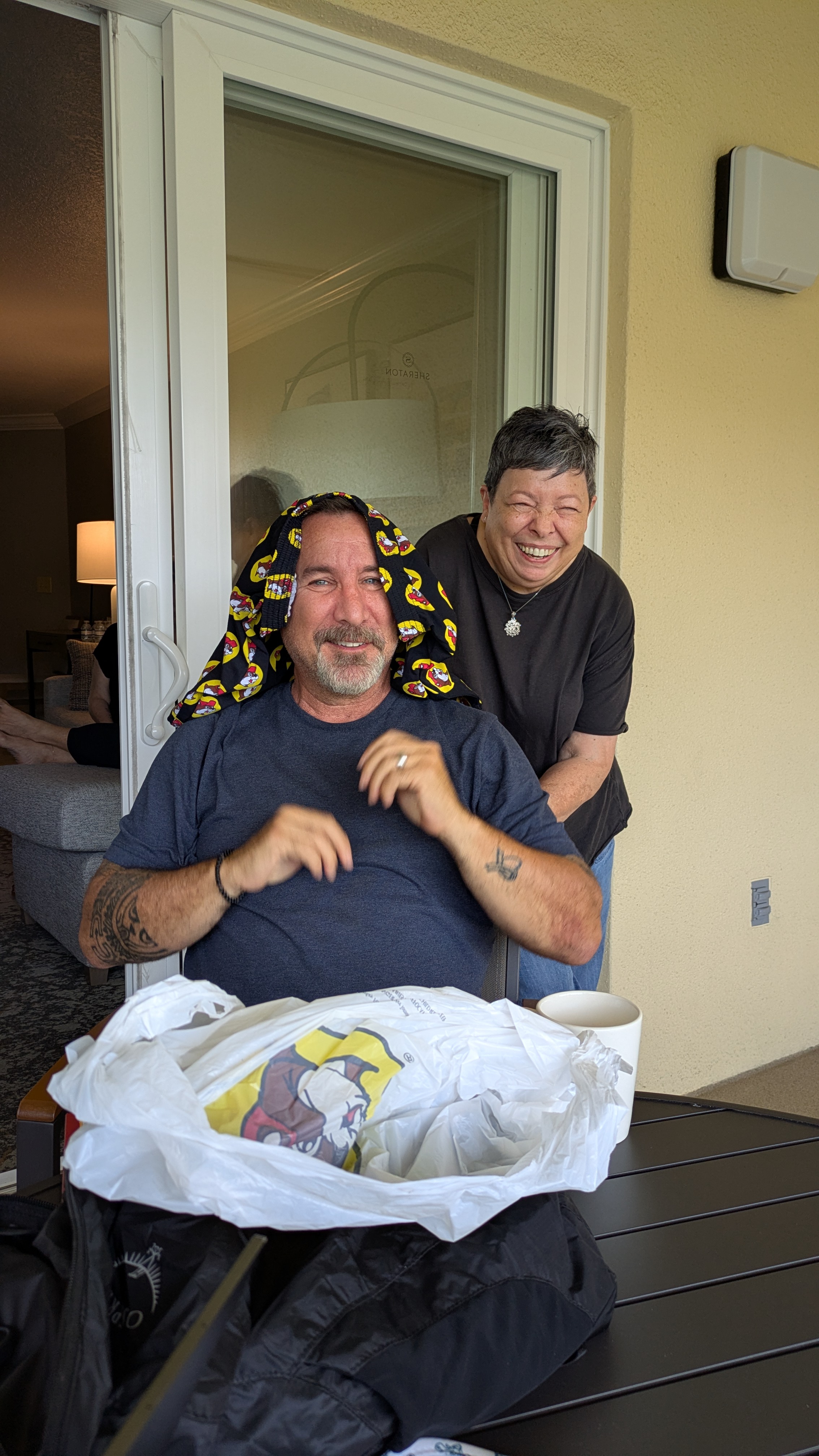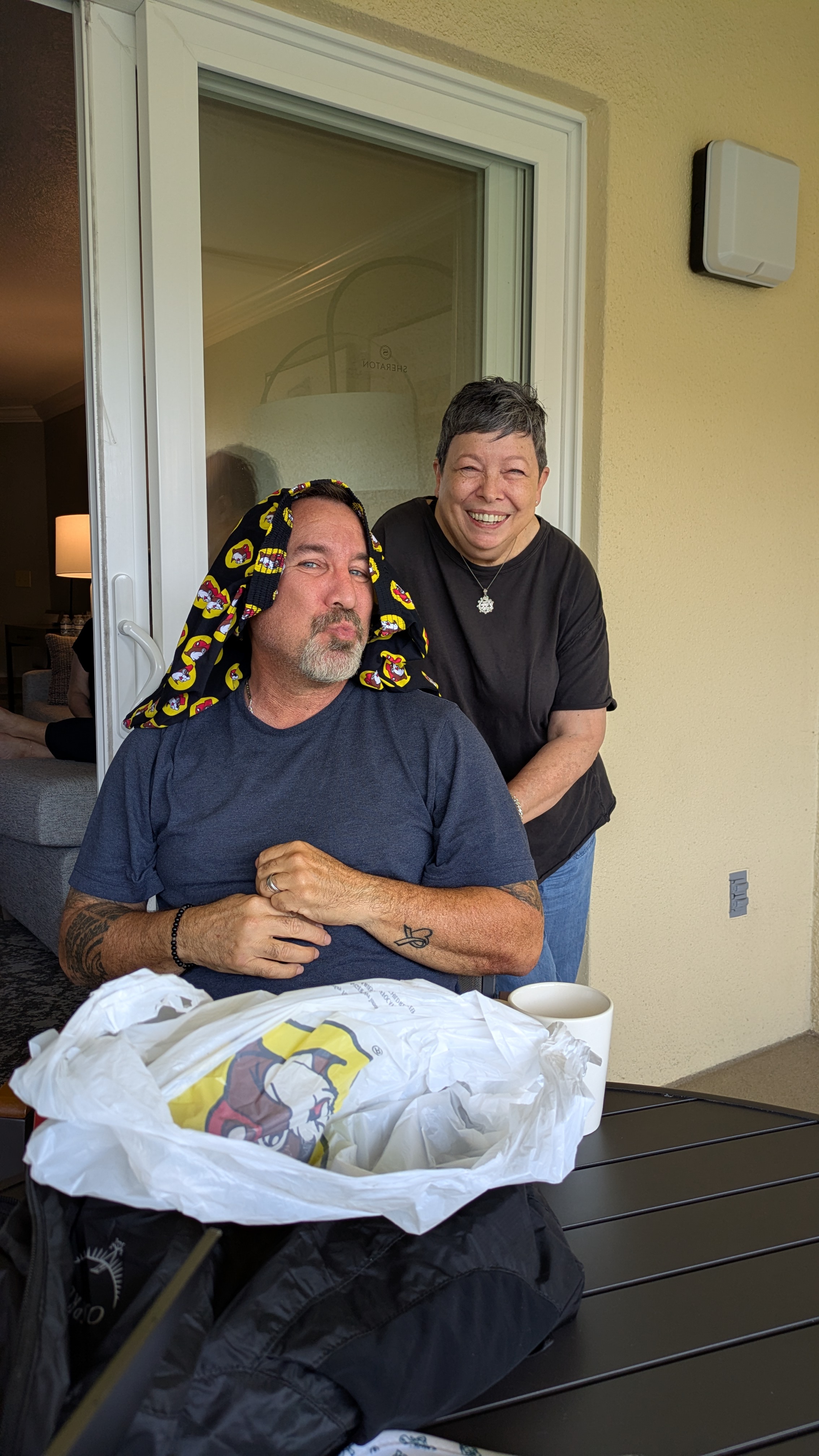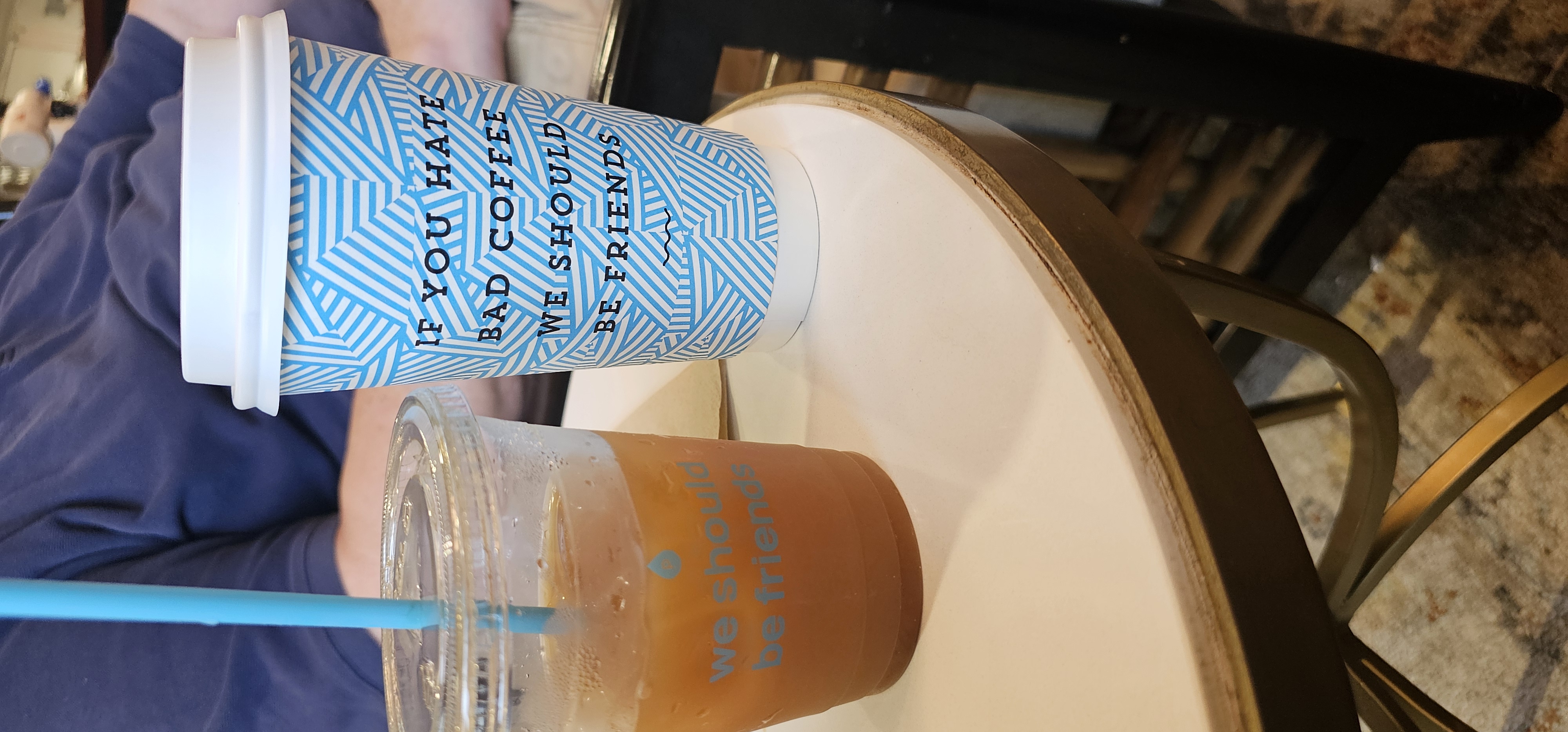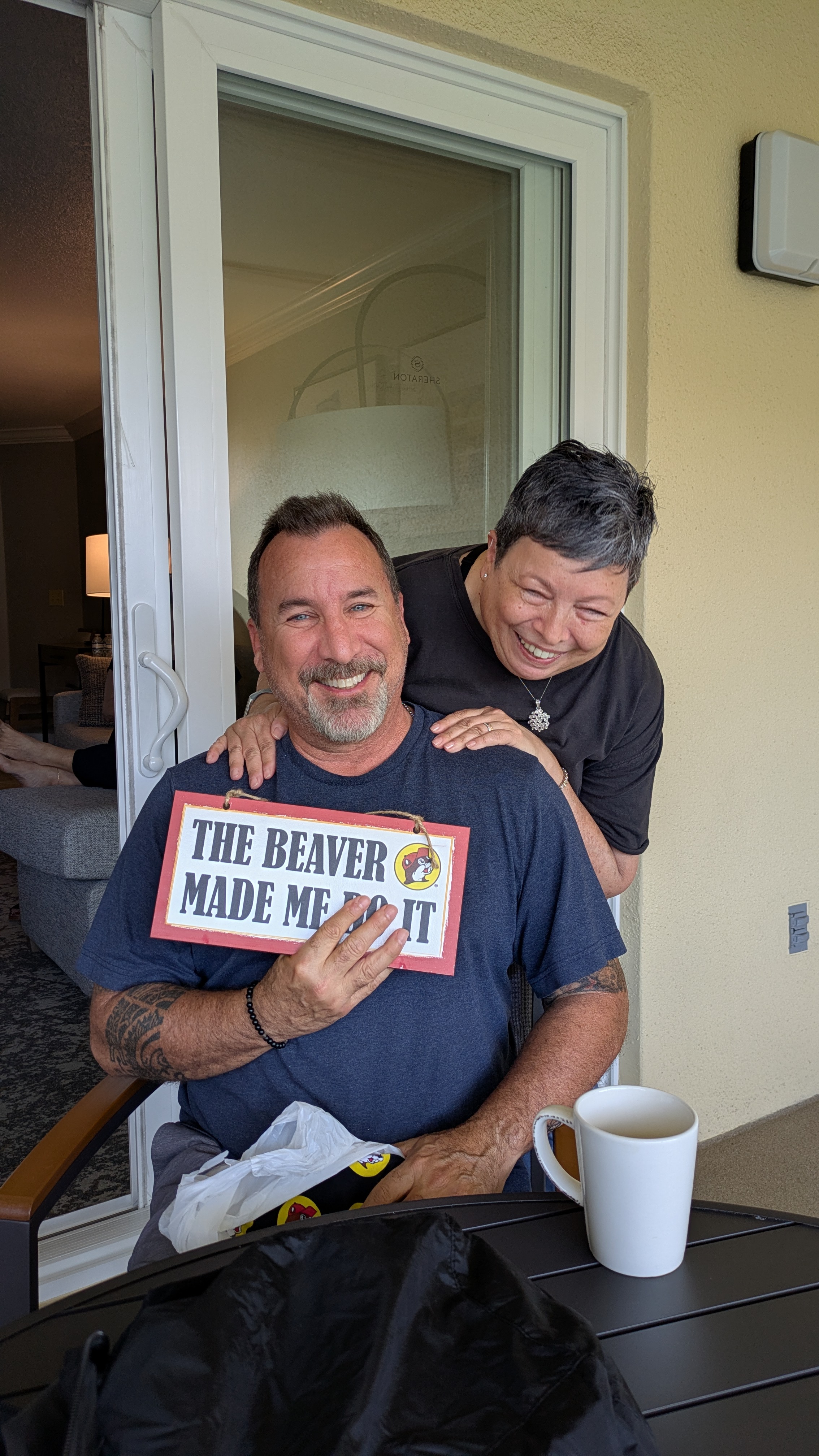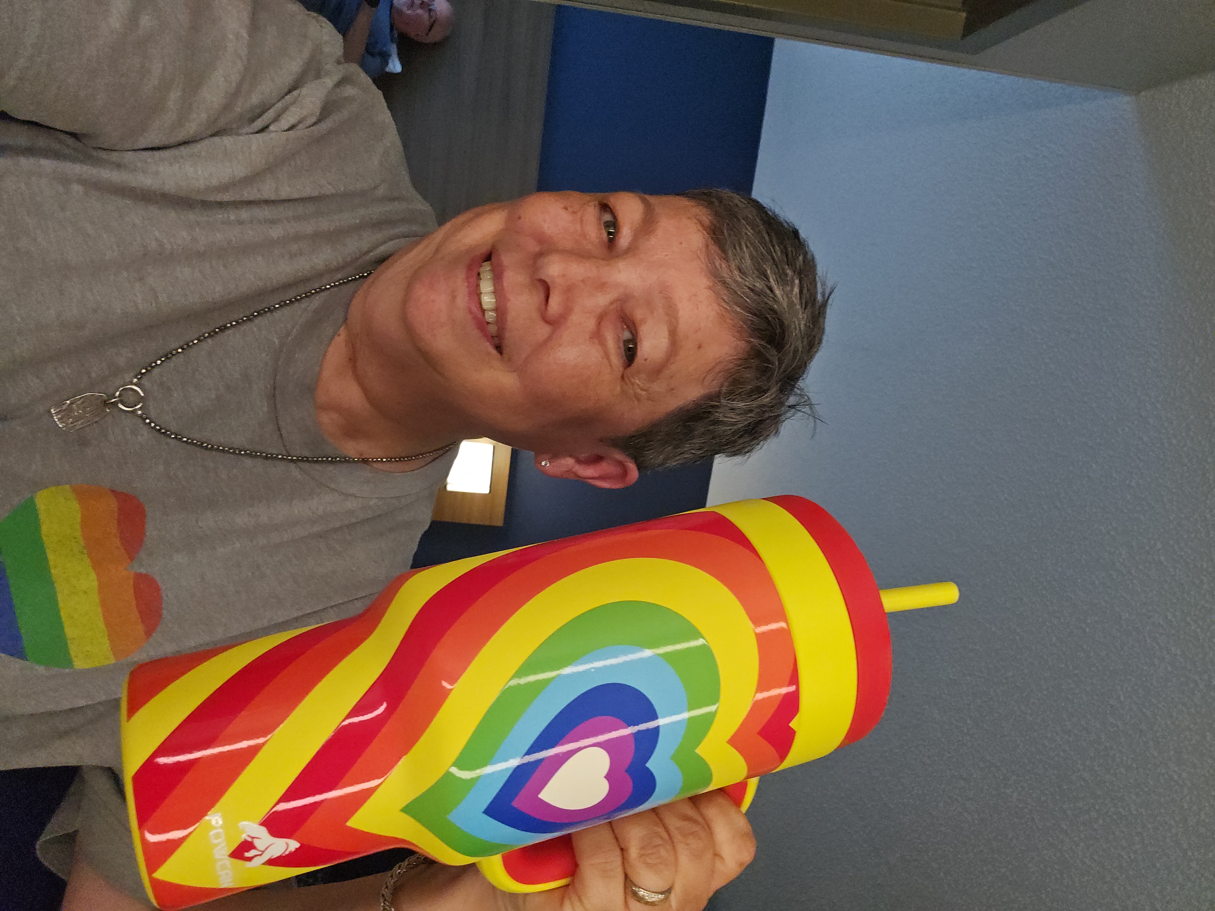 Eileen took this rainbow cup with her everywhere on the trip